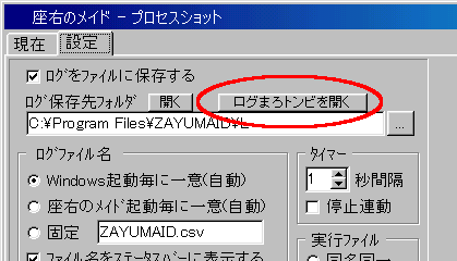 | フォルダ | 開く | ログ保存先フォルダを選択し直します. |