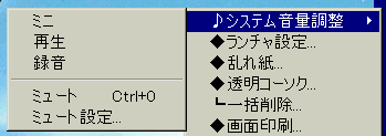 トレイアイコンの右クリックメニューからシステム音量調整を選ぶと、さらにサブメニューが表示されます。