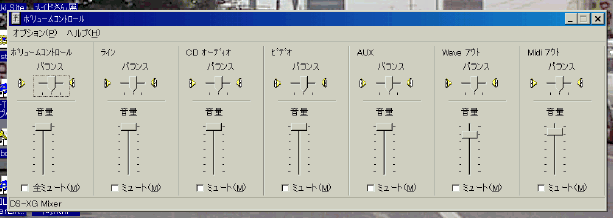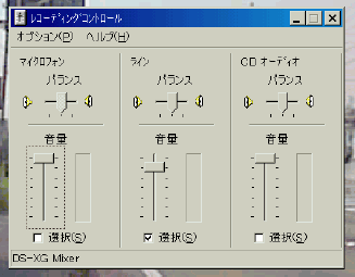 「再生」で、再生チャンネル別音量調整ウインドウを開きます。スピーカアイコンをダブルクリックすると表示されるウインドウと同一です。