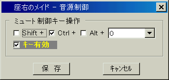 コンボボックスで選べるキーと、Shift、Ctrl、Alt のキーの組み合わせが選べます。保存をクリックすると、そのキーの組み合わせを、音源ミュートの制御ショートカットキーとして登録します。