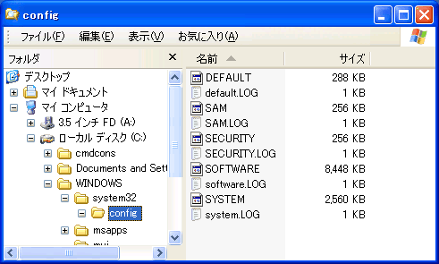 次に、WinXP のレジストリ構成と実体との関係を調べていく。