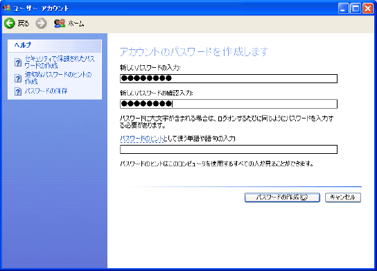 パスワードの作成は、文字通り「パスワードを作成する」をクリックして進める。