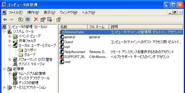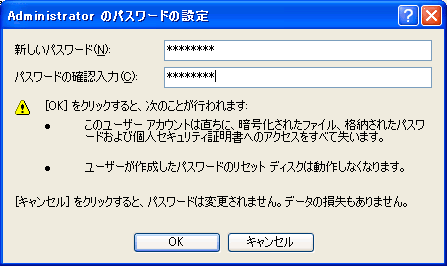 Administrator ユーザはビルトインアカウントだ。WinXP 導入時にパスワードの設定画面が現れるが、そこでパスワードを設定しなかったときは、現在使用中の WinXP の Administrator ユーザはパスワード無しということになる。