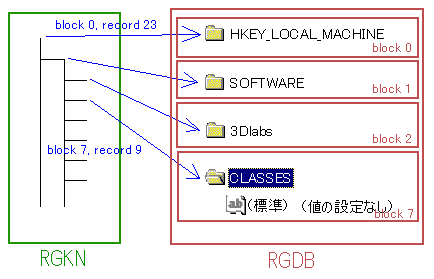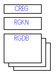 ・総合管理情報ブロック(CREG) ・樹構造情報ブロック(RGKN) ・データ情報ブロック(RGDB)群 |