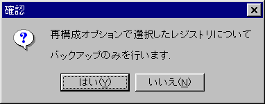 さて「バックアップのみ」を実行すると、再構成は行わず、再構成の際に行うレジストリバックアップのみを行う。
