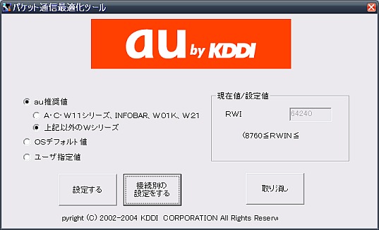 がインストールされ、au.NET へのダイヤルアップ設定も登録される.