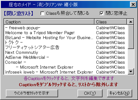 キャプションをダブルクリックすると閉じ窓リストから除外します。