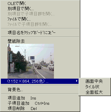 | タイル状 | 壁紙をデスクトップに敷き詰める. |
