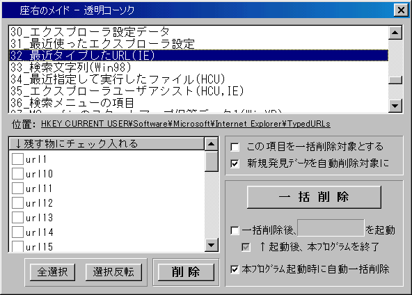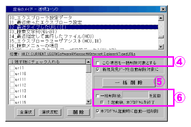 削除しても復活するデータや MRU のようにキャッシュ的に使われるキーなどをパソコン起動時あるいは任意のタイミングで削除できる特徴があります。
